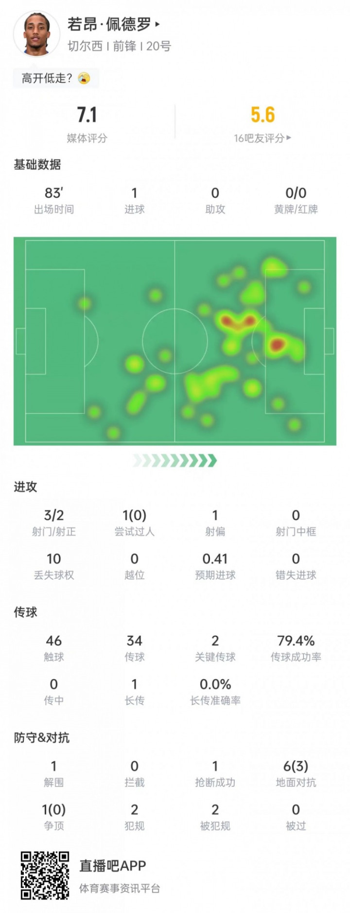 Thống kê của Joao Pedro: Ghi 1 bàn sau 3 cú sút, tung ra 2 đường chuyền then chốt và nhận 7,1 điểm