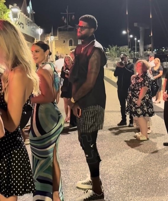 George được xếp hàng ở cửa của hộp đêm, đeo miếng đệm đầu gối. Đứng trước mặt anh là vợ Daniela