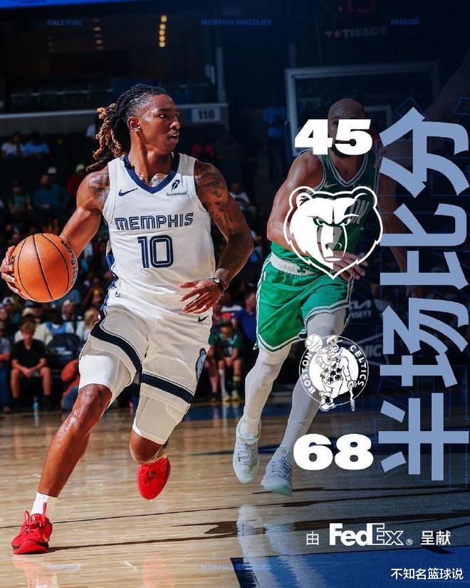 Vào ngày 9 tháng 10, Celtics thi đấu trên sân khách với Grizzlies trong trận đấu trước mùa giải NBA. Cả Tatum và Morant đều vắng mặt vì chấn thương. Dẫn đầu bởi 21 điểm của Brown trong hai hiệp đấu, Celtics đã dẫn trước Grizzlies 68-45 với 23 điểm trong hiệp một. Sang hiệp 2, Celtics có lợi thế tối đa 29 điểm. Những đòn phản công ngoan cường của Grizzlies trong hiệp cuối vẫn bất lực. Chung cuộc, Celtics đã đánh bại Grizzlies với tỷ số 121-103 để có khởi đầu thuận lợi ở giai đoạn tiền mùa giải. Grizzlies đã trải qua chuỗi 2 trận thua trong giai đoạn tiền mùa giải.