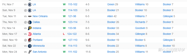 The Suns đã đánh bại Spurs với tỷ số 111-102 để thắng ba trận liên tiếp. Booker và Dillon đều ghi được 20 điểm trở lên trong trò chơi này. Năm cầu thủ của đội Suns có con số gấp đôi. Vì Spurs không có Benyama nên trình độ tấn công và phòng thủ của họ sa sút. Fox ghi được 26 điểm một cách vô ích. Đêm nay, nhân vật phản diện Dillon trở thành người tỏa sáng nhất.
